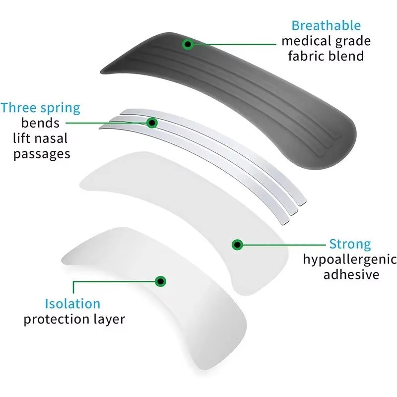 AirLock™ je medicinski nosni trak, zasnovan za naravno odpiranje in podporo nosnih dihalnih poti med spanjem. Z močnim lepilom in napredno dvižno zasnovo zagotavlja enakomeren pretok zraka, zmanjšuje smrčanje in preprečuje dihanje skozi usta. AirLock™ je idealen za tiste, ki trpijo zaradi nočne zamašenosti, utrujenosti ali slabe kakovosti spanca, saj obnovi najbolj naraven način dihanja skozi nos.