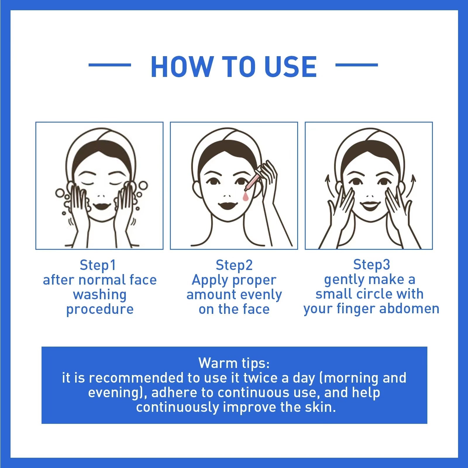1. Pred vlažilno uporabo nanesite 2–3 kapljice na očiščeno kožo.