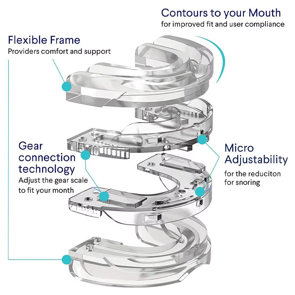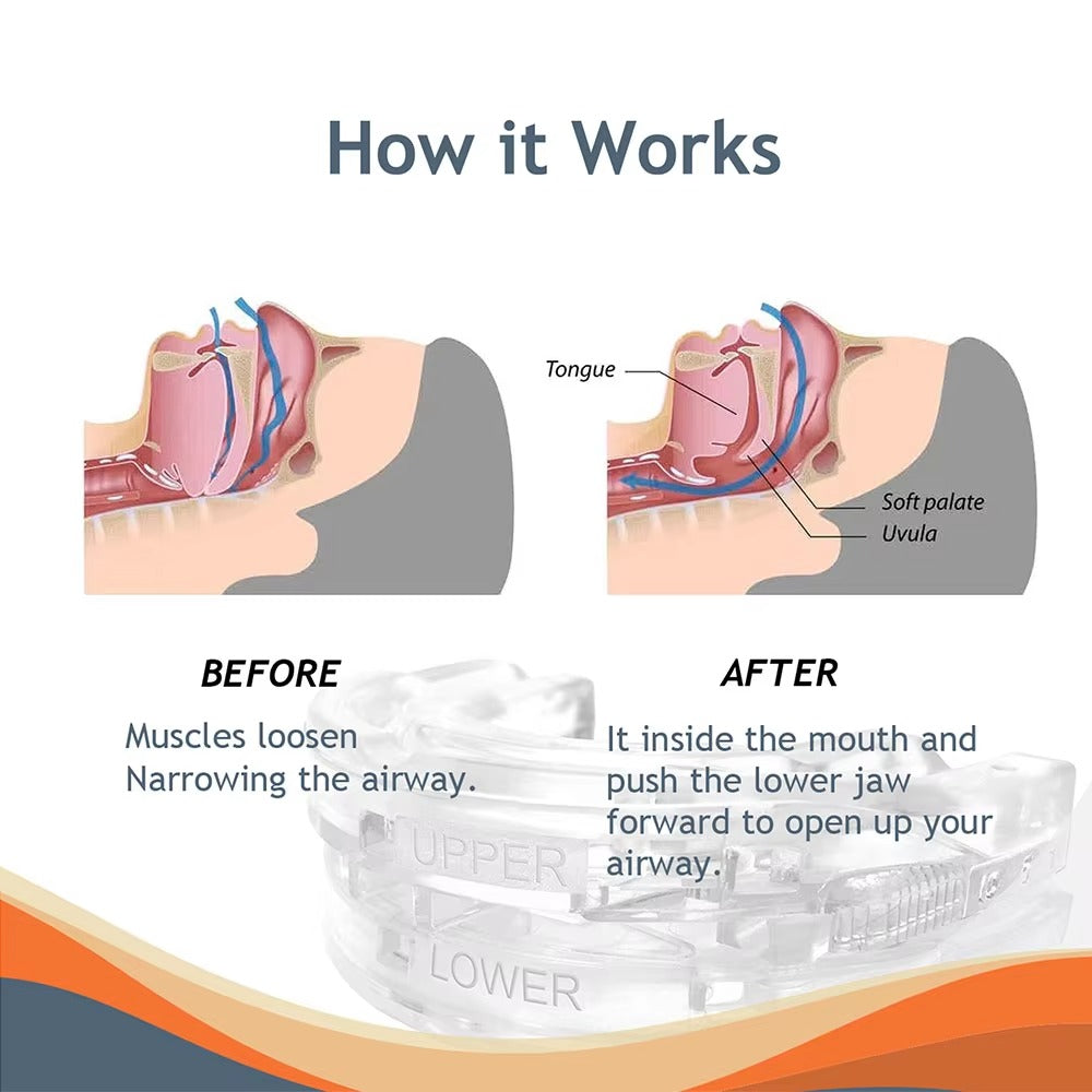 SilentAlign™ ščitnik za spanje je vaša neinvazivna rešitev za zmanjšanje smrčanja in povrnitev mirnega spanca. Naprava, oblikovana s tehnologijo, ki jo navdihuje zobozdravnik, nežno poravna spodnjo čeljust, da ohrani odprte dihalne poti in pomaga preprečiti smrčanje in blago apnejo že prvo noč. Prilagoditev vrenja in ugriza zagotavlja varno, prilagojeno prileganje, medicinski material pa zagotavlja udobje, varnost in vzdržljivost.